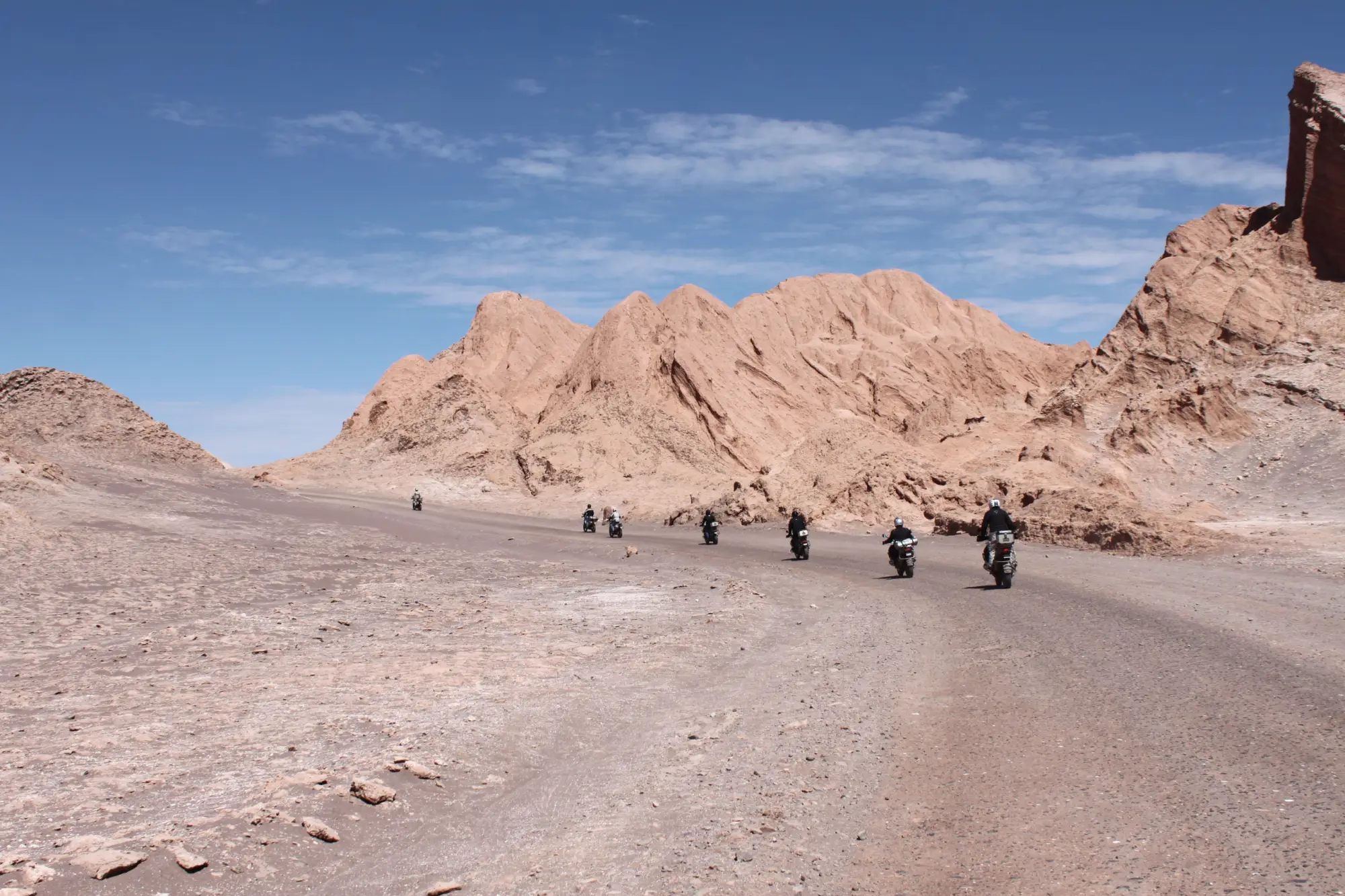 Surrounded by mountains and volcano's, the dimensions of this vast plain of salt transmits a set of mixed feelings to the riders; surprise, novelty, admiration and enchantment, while our motorcycles glide effortlessly on the shiny hard salt crusts. A silent landscape of salt stretching in all directions bringing the riders to a powerful state of mind; for many an opportunity to experience their lifetime desired to truly feel …freedom!